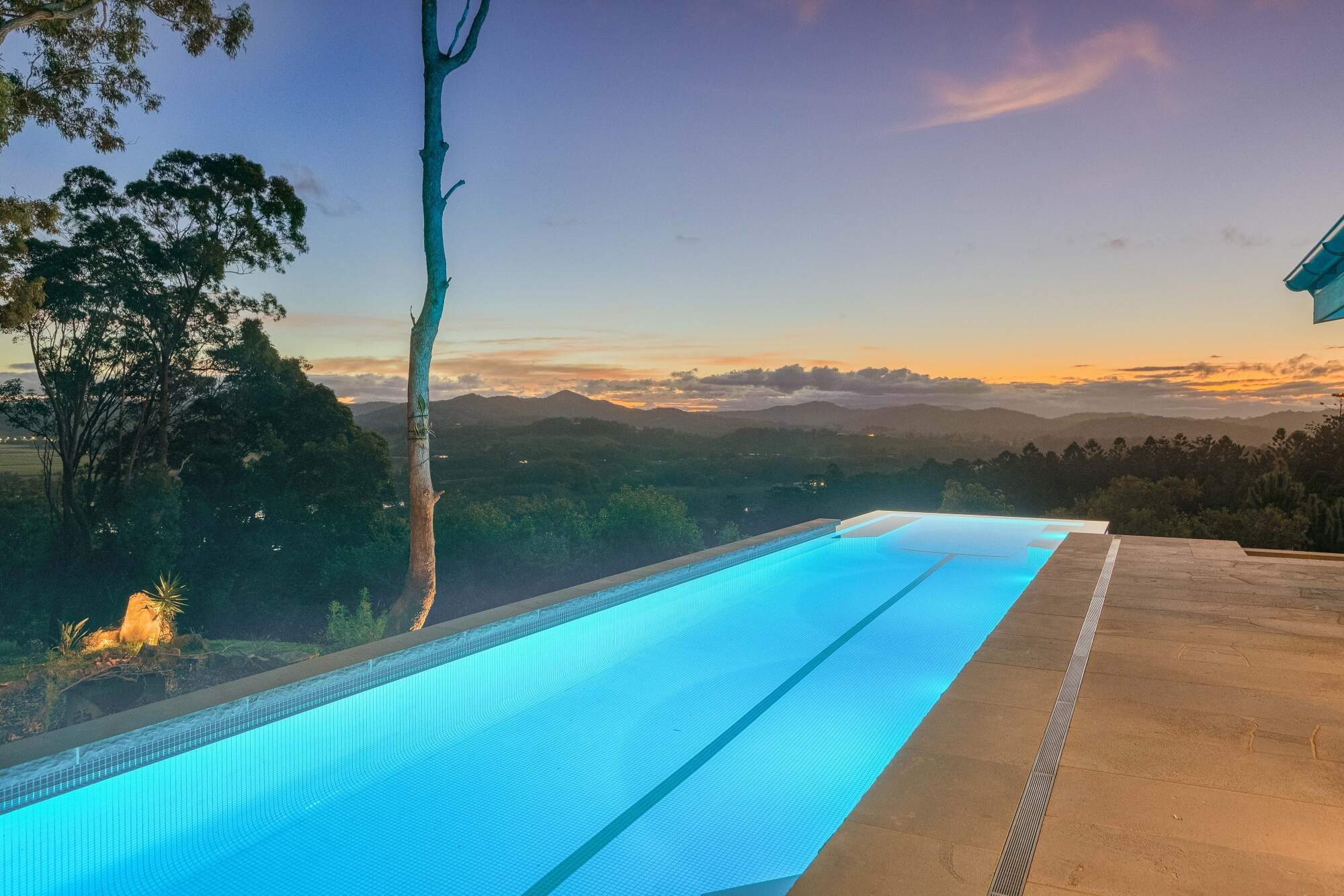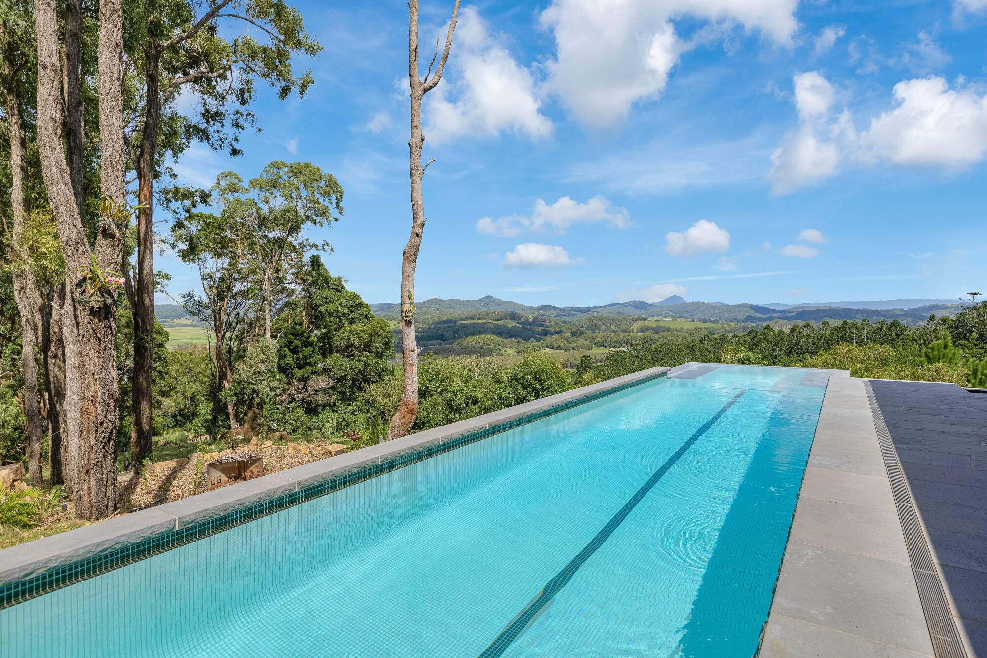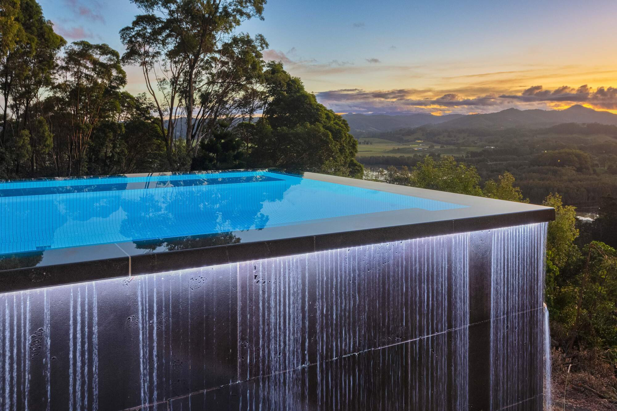 This 15-metre lap pool is designed to blend effortlessly with its natural surroundings, creating a tranquil retreat. Set into the sloping landscape, it offers a seamless connection between home and nature. The gentle spillover edge, highlighted by soft LED lighting, creates a peaceful atmosphere perfect for relaxation and exercise. With every detail crafted to enhance the beauty of the setting, this pool transforms the outdoor space into a sanctuary that elevates everyday living.