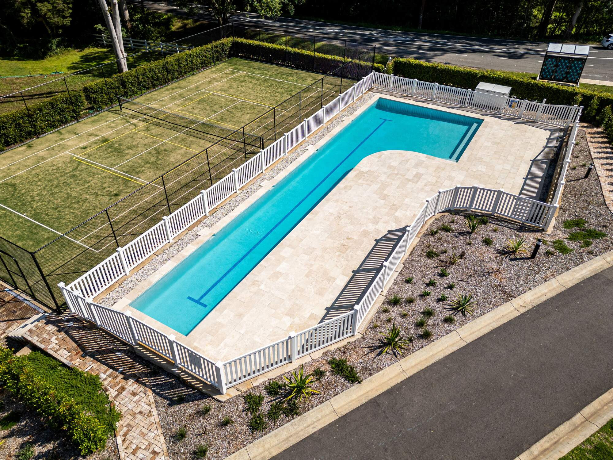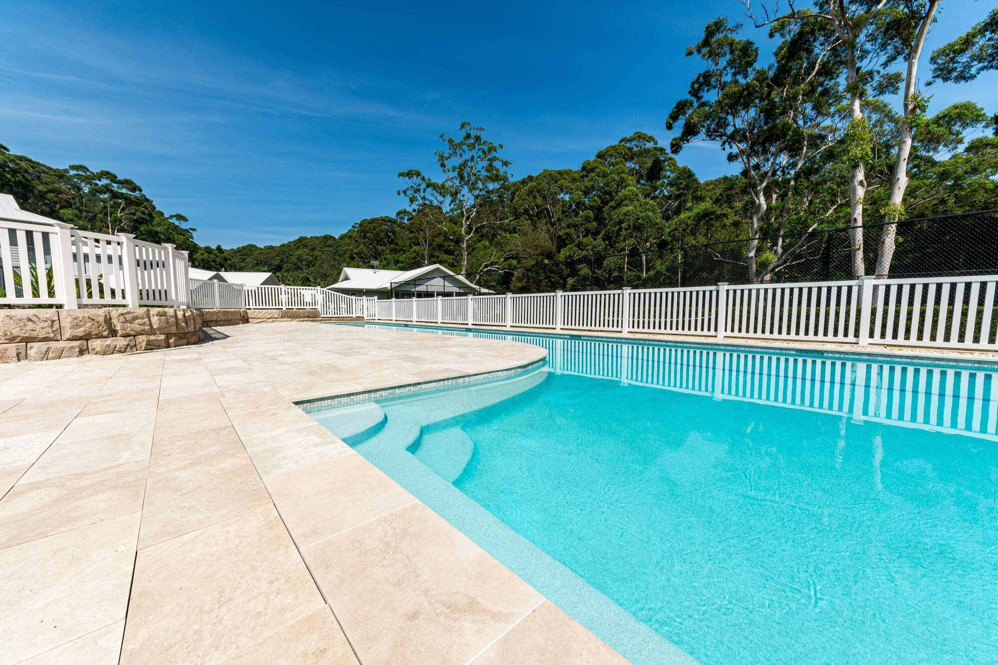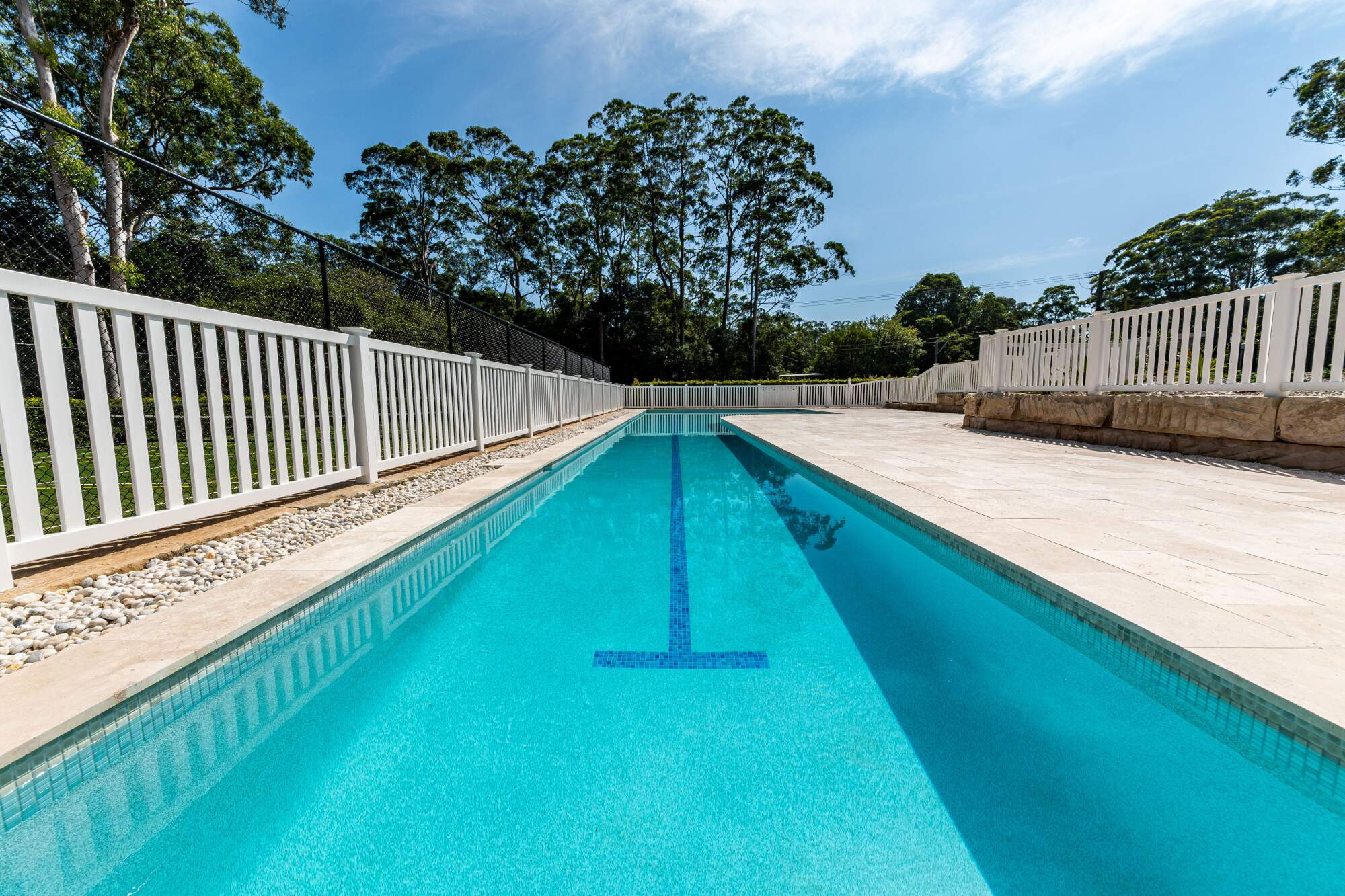 Tucked into a coastal estate on Avoca Drive, this 25-metre fully tiled lap pool balances structure with restraint. Designed for active use without overpowering the site, it was built on reactive soil with steel screw piles, reinforced pads, and a waterproofed stone base.