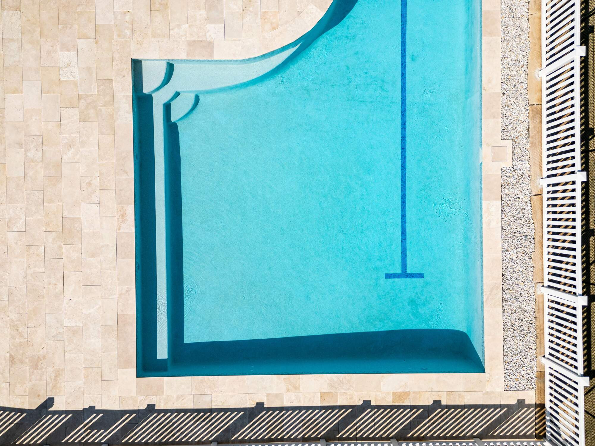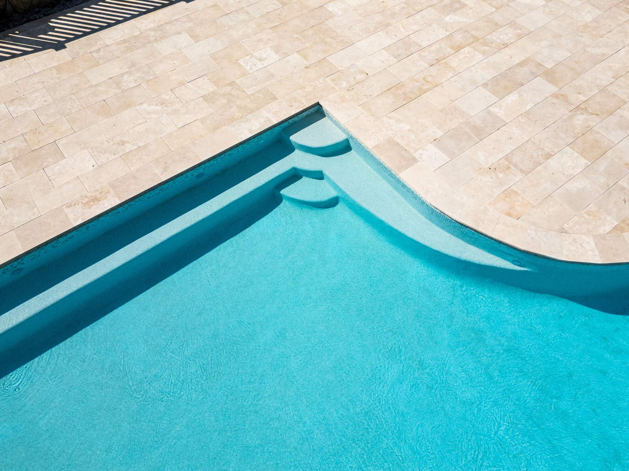 Finished in glass bead render, Leyla Jaspa tiles, and Travertine coping, the pool combines durability with refined aesthetics. Theralux filtration, Water Witch control and LED lighting complete a seamless single-stage build.