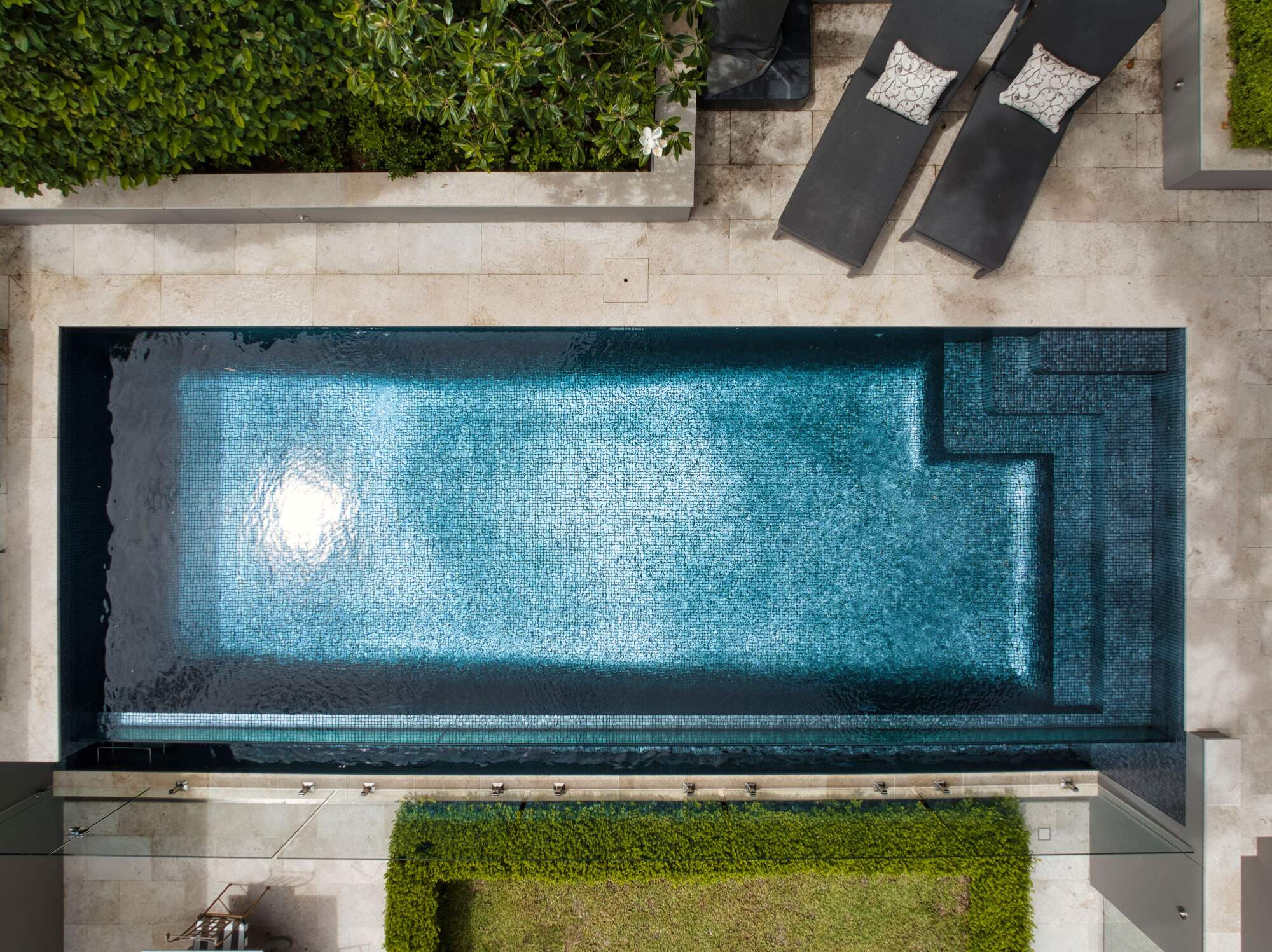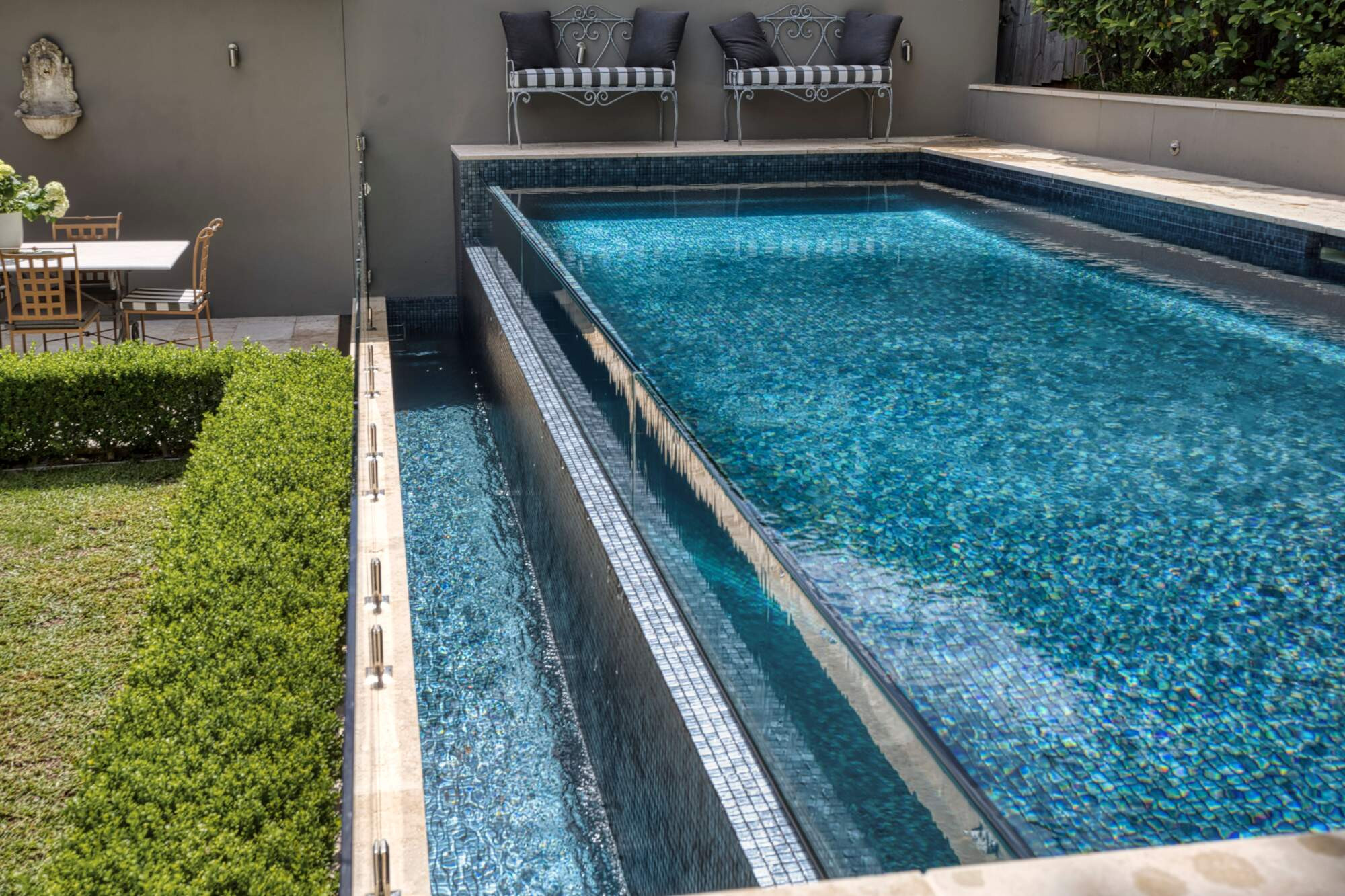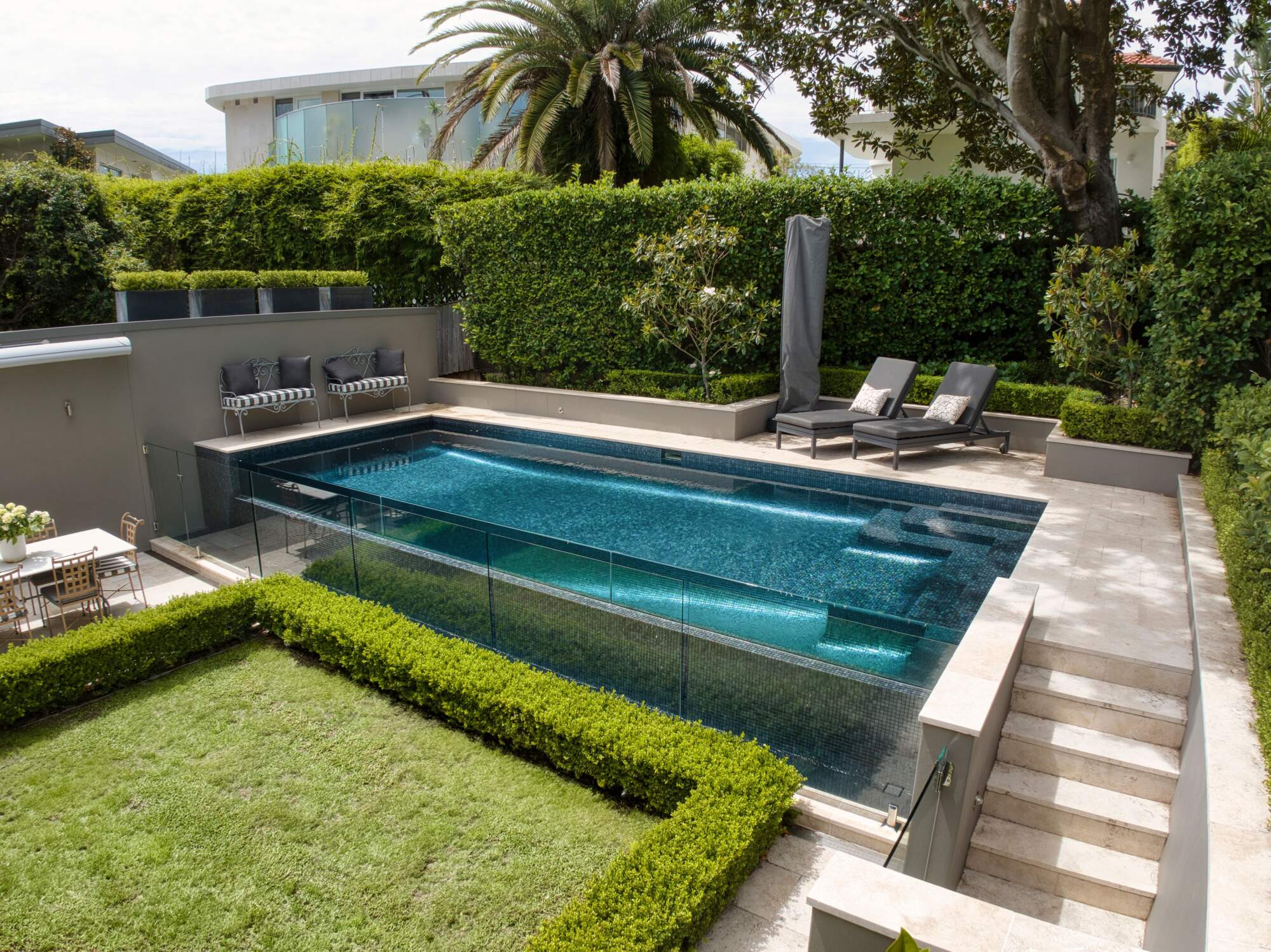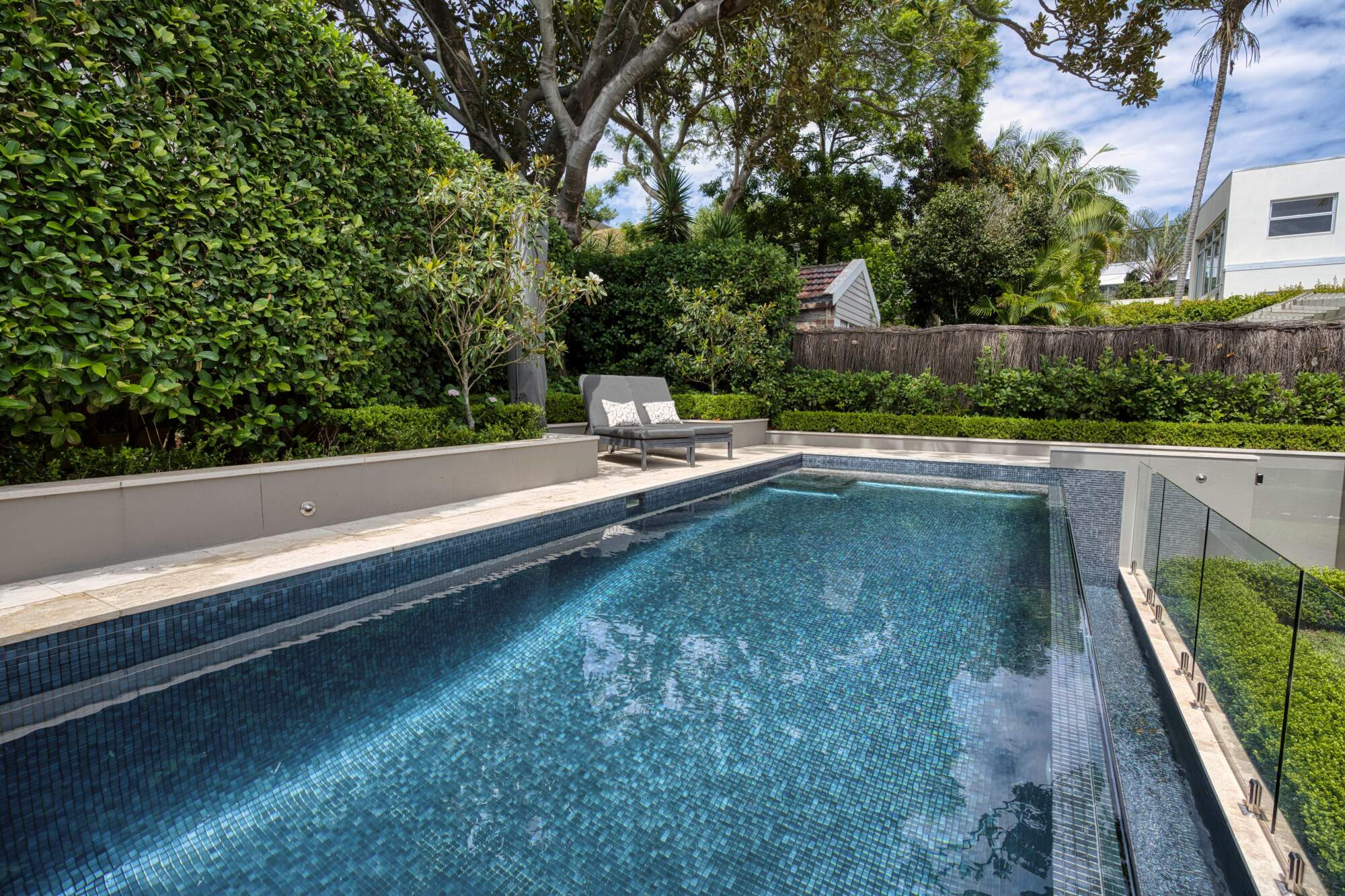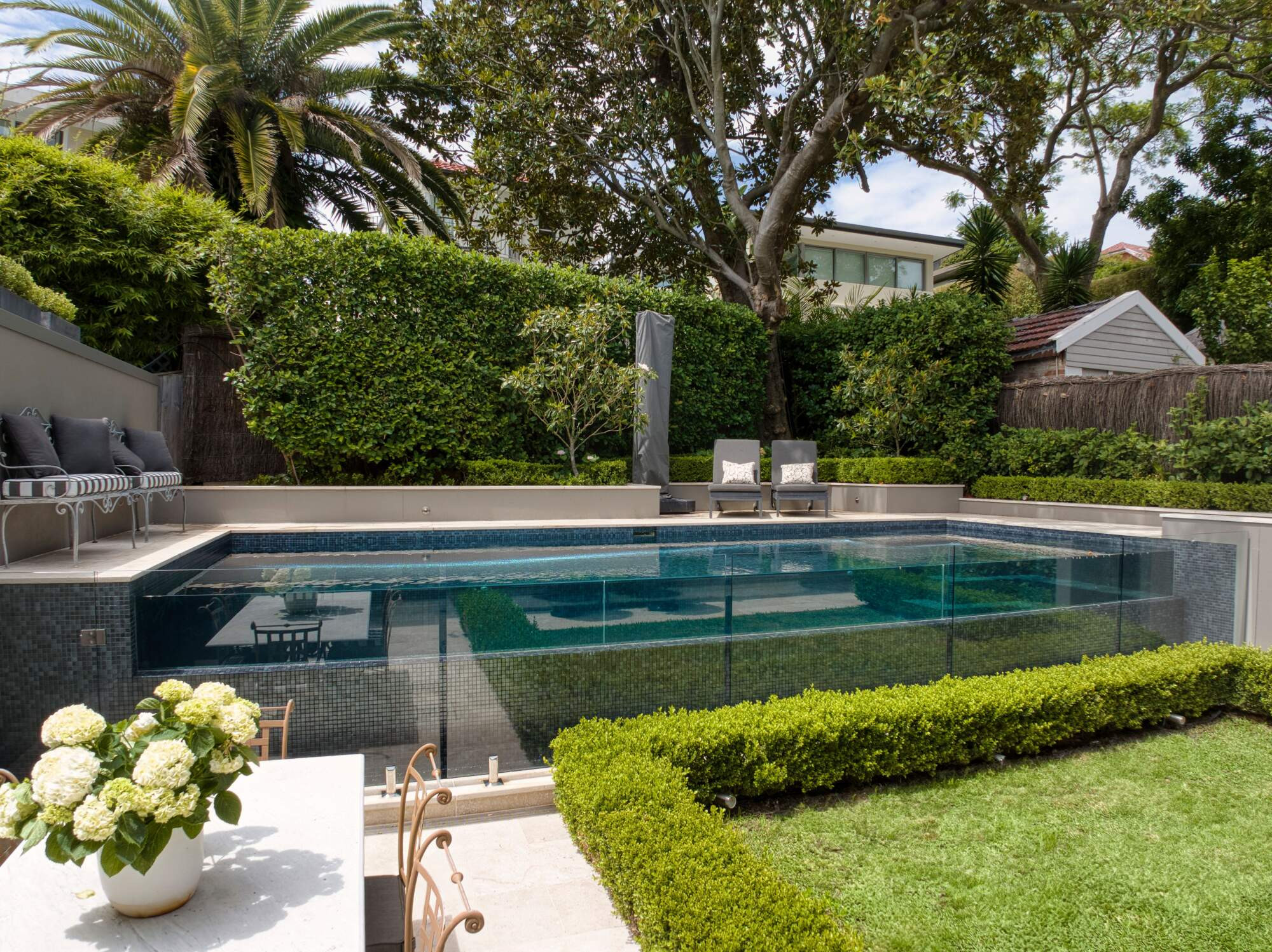 In keeping with the formal atmosphere of the recently renovated home, this elegance is reflected in the renovation of the pool's design. The pool has a strong visual appeal thanks to its infinity edge glass panel and stunning mosaic tiles. When your family is enjoying the pool, you can relax knowing that the view into the pool is unhindered by the infinity edge glass panel. Surrounded by formal gardens and tiled walkways, the area creates an elegant and pleasurable entertainment space.