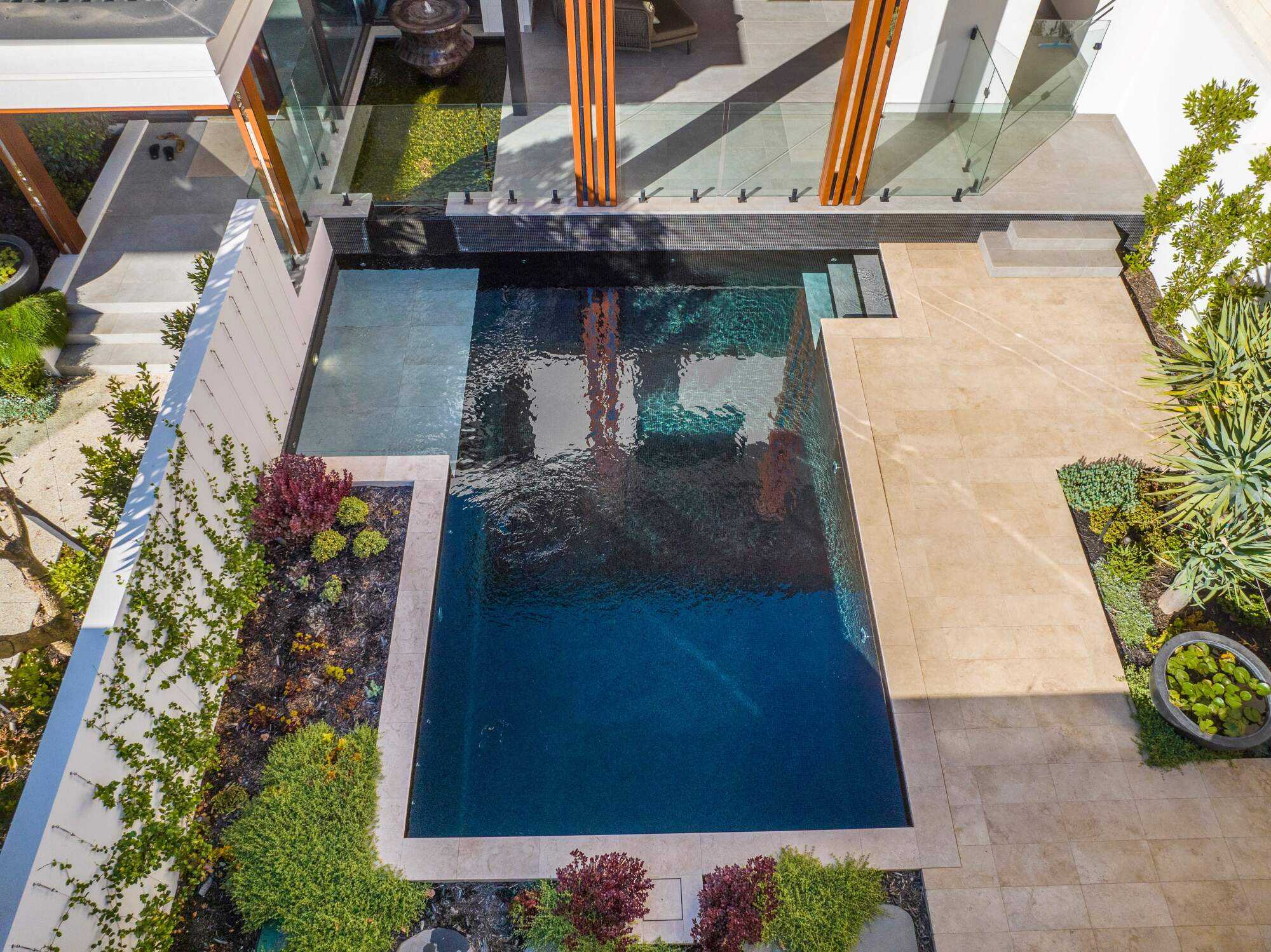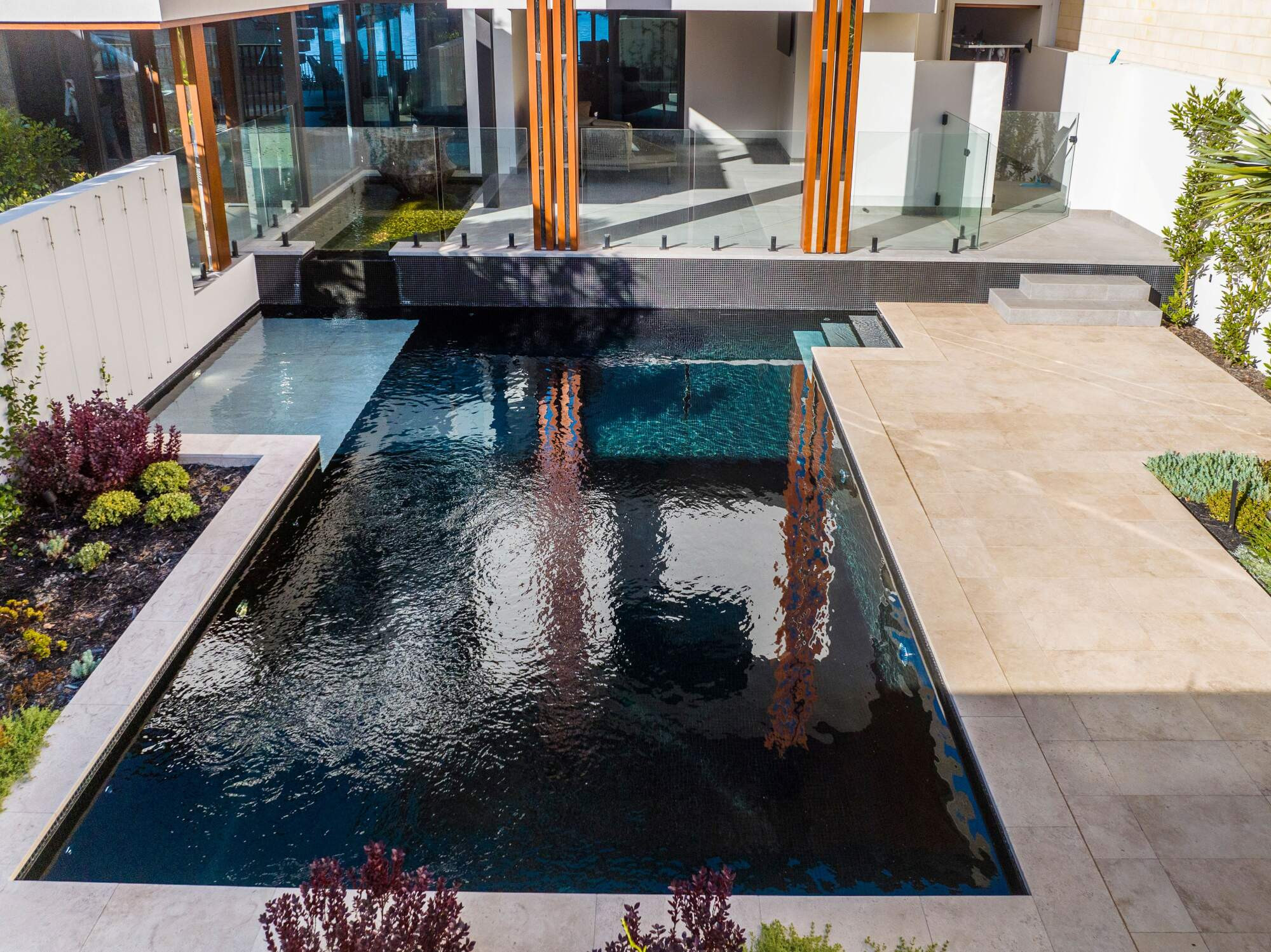 The clients and designer requested a pool that drew attention and surprised guests. The colours are so outstandingly different to that of the surrounding house and outdoor area that the wow factor is incredible. Then you appreciate the engineering and construction required to construct something with so much detail. The clients are astounded at how incredible it looks.