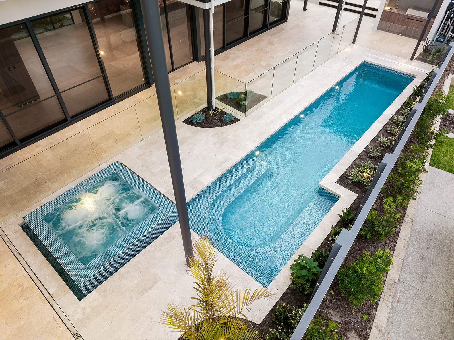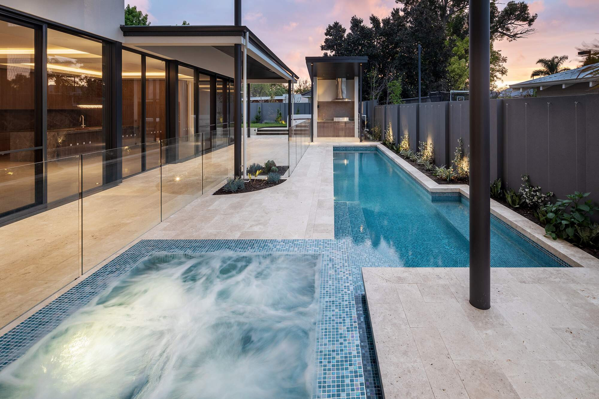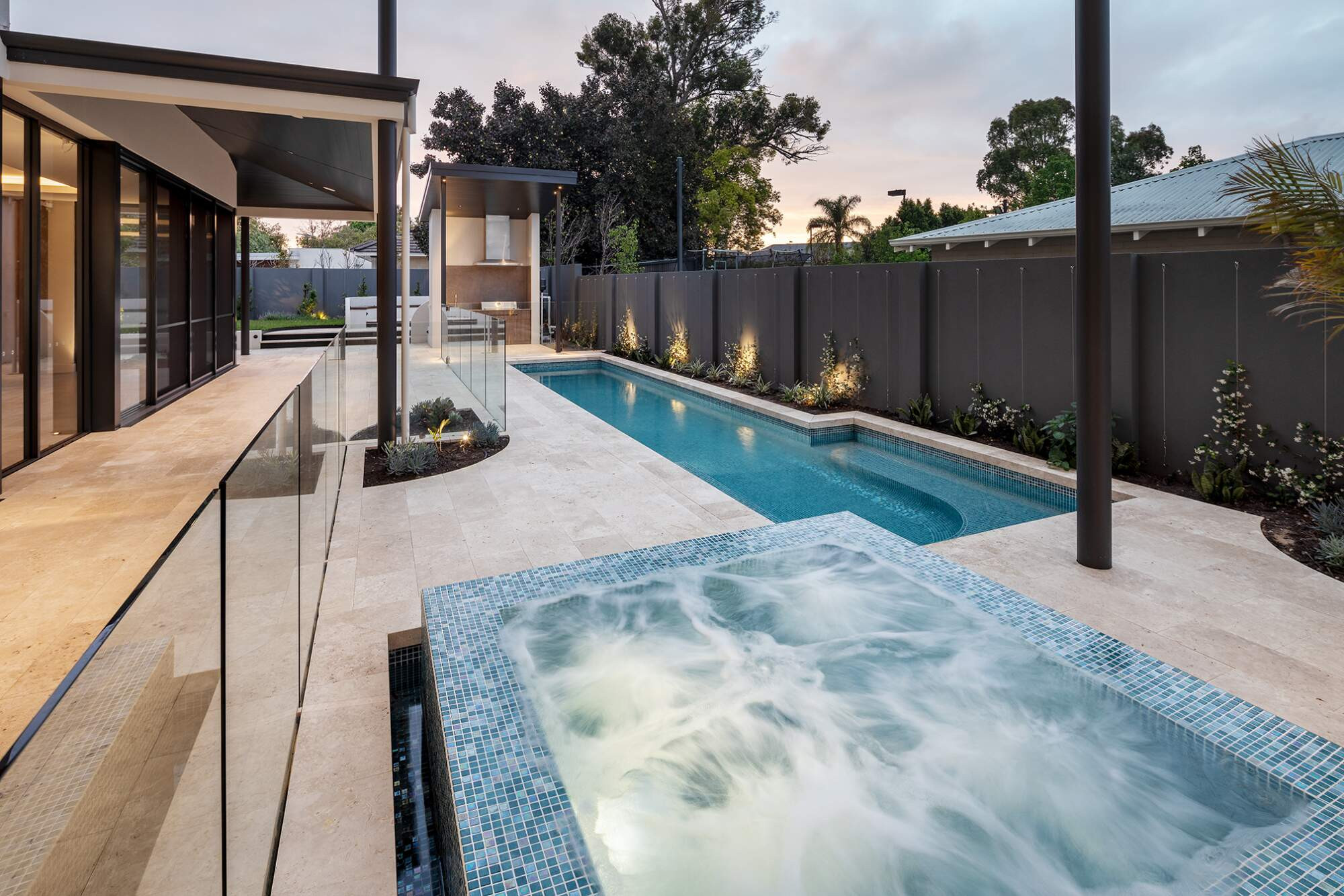 This project showcases a perfect blend of innovation, functionality, and aesthetic excellence. Designed to meet the client's brief for a low-maintenance, luxurious spa, it incorporates advanced Viron Connect 10 Technology, a salt chlorinator, gas heating, and LED spa lighting for seamless automation and efficiency. Pool is Cleaned and Heater using Madimack Technology and has an Inground Elite Pool Blanket