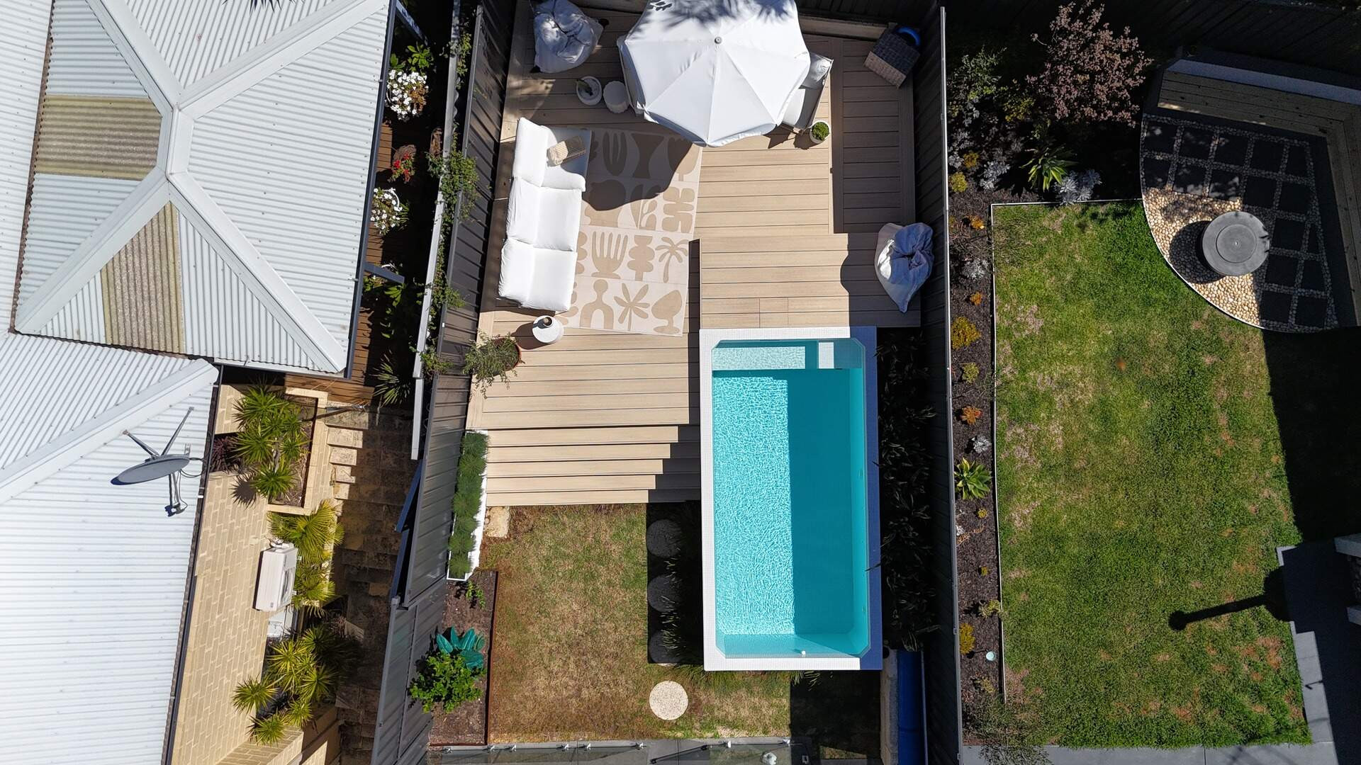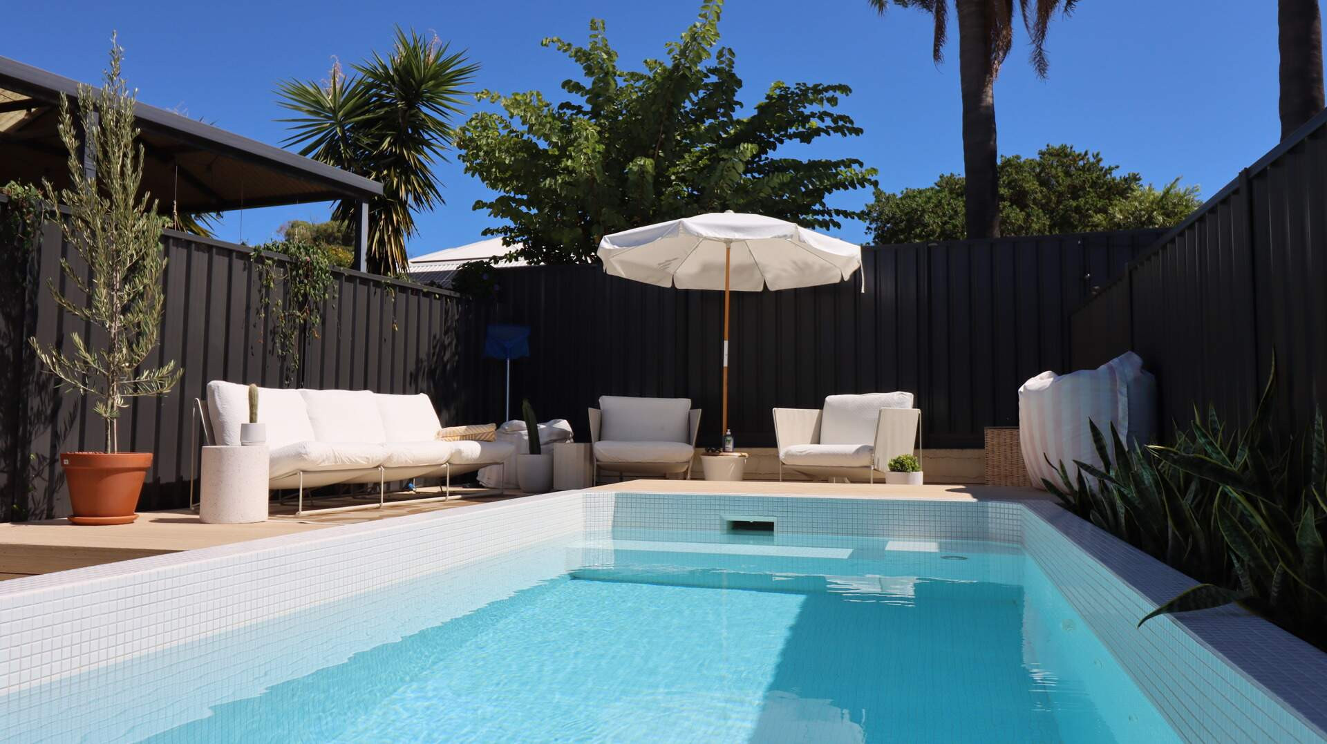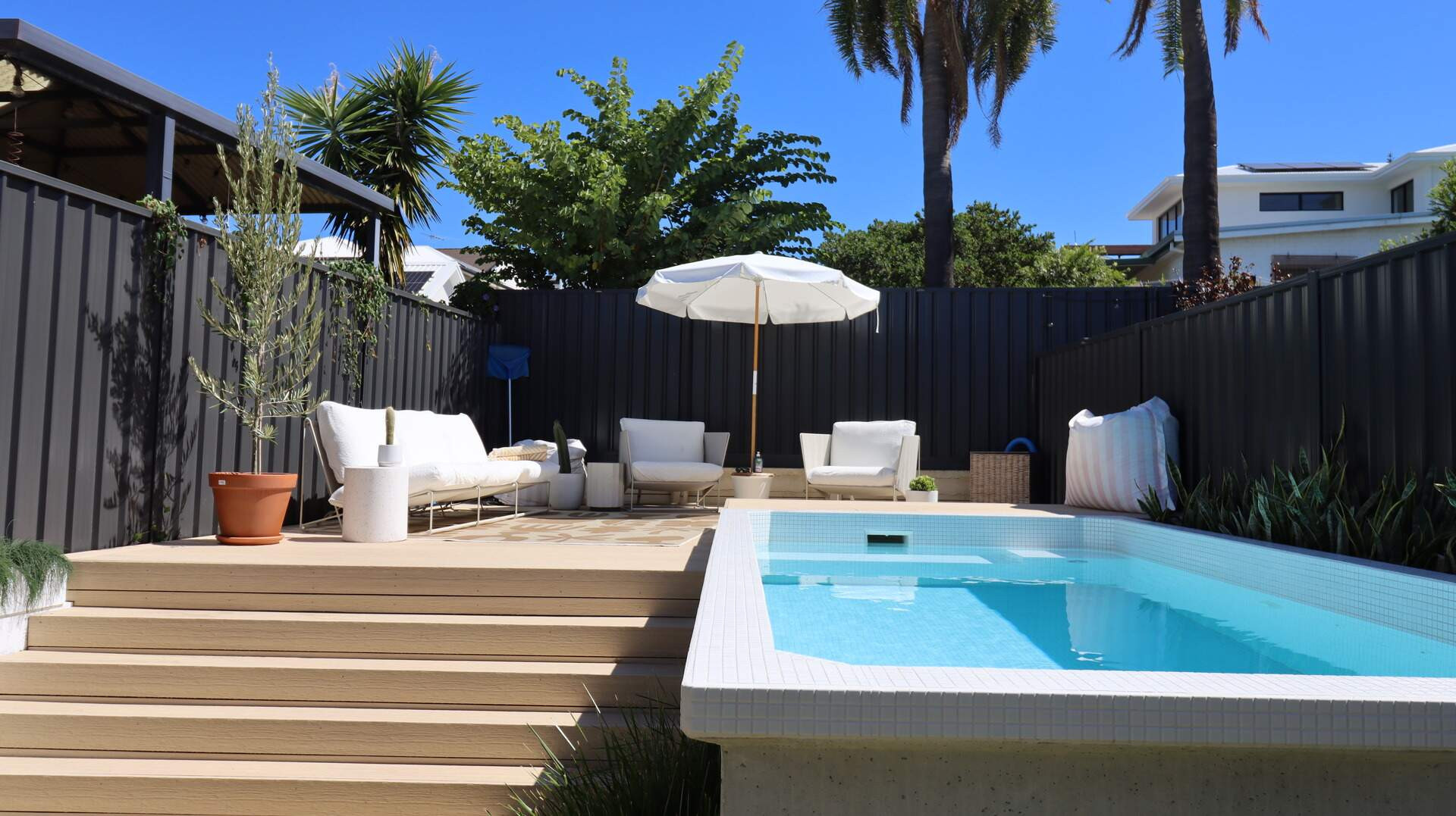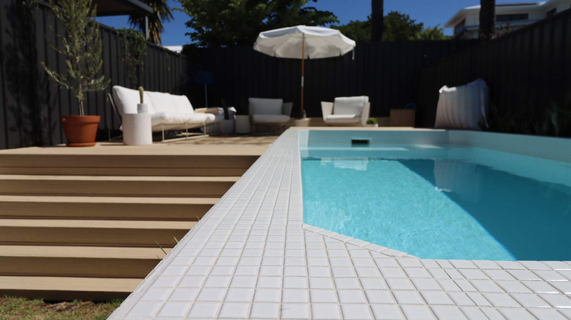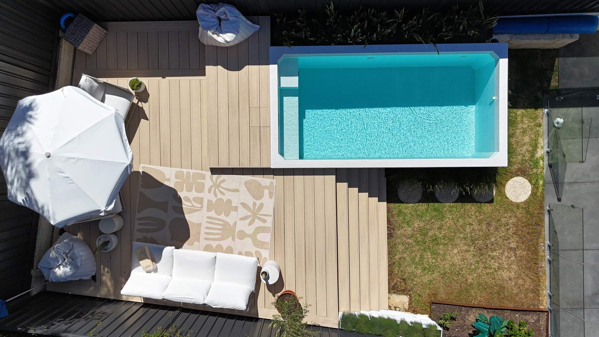 This stunning Karrinyup pool combines sleek design with ultimate functionality. Its raised-edge design, vibrant water color, and seamless composite decking create a luxurious, low-maintenance retreat. Built-in seating, lush landscaping, and ambient lighting enhance relaxation and entertaining. Engineered with precision to overcome site challenges, this installation showcases innovative construction and superior craftsmanship. Elevate your outdoor space with elegance and sophistication.